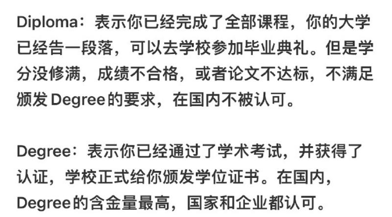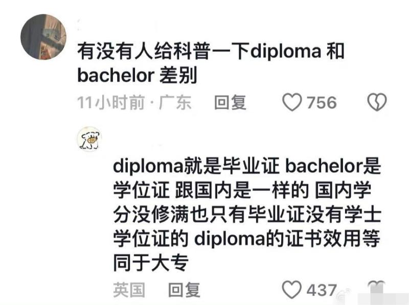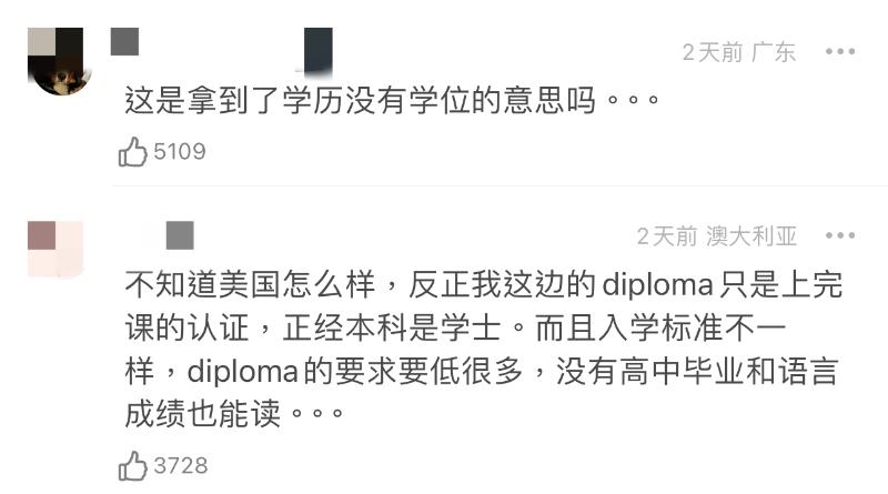 粉絲澄清表示兩者相同,只不過差異在於Diploma沒有修文化課,但網友認為Diploma和Degree本質上就是不一樣,Diploma的門檻就是低了很多👇