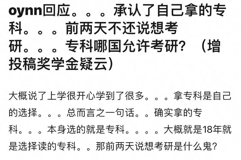 不過娜娜這番解釋,也讓不少網友集體吐槽,認為明明就是專科生學歷,為什麼一直營造「學霸」的營銷?大專和大學本科相差太多了👇
