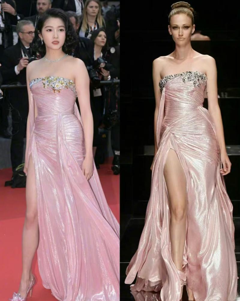 而在15號這天,關曉彤第五次亮相戛納紅毯,工作室的出圖讓人很期待!先來看看,關曉彤穿了2008年的古董高定禮服,抹胸珠光粉設計看起來…超高貴!