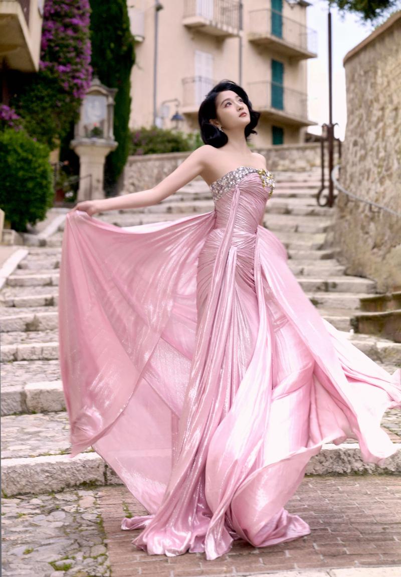 而在15號這天,關曉彤第五次亮相戛納紅毯,工作室的出圖讓人很期待!先來看看,關曉彤穿了2008年的古董高定禮服,抹胸珠光粉設計看起來…超高貴!