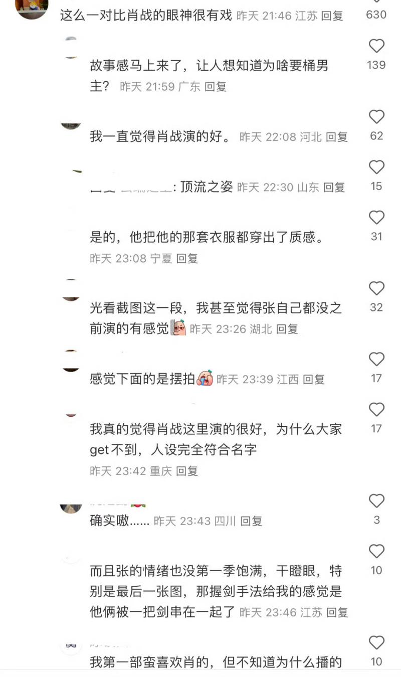 就是說,雖然目前戲份不多,但居然有這麼多吐槽,似乎也為第一季肖戰正名,演技確實沒問題啊!