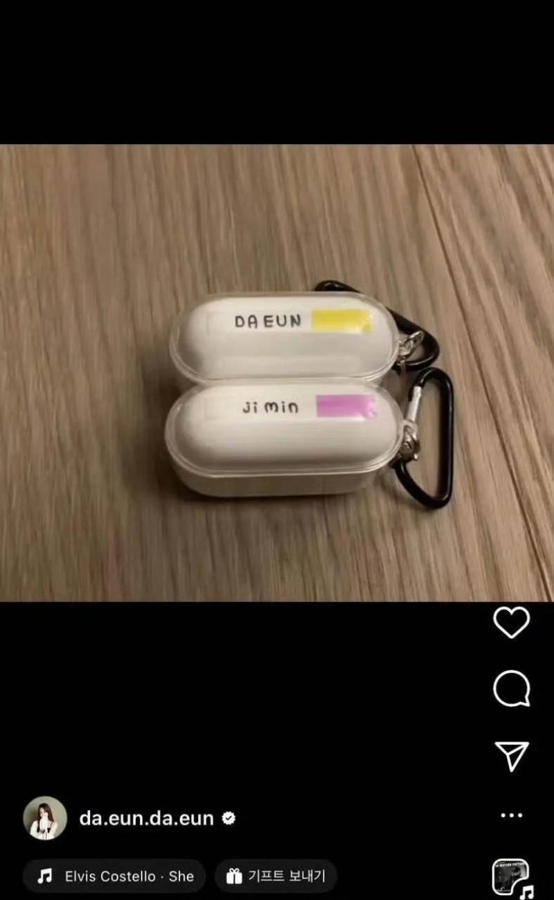不過,16號這天卻爆出她上傳了和Jimin相關的物品,再次引起關注!這就來看看,有網友曬出截圖,表示宋多恩的限動上傳了一張印有她和Jimin名字的耳機視頻,隨後秒刪👇