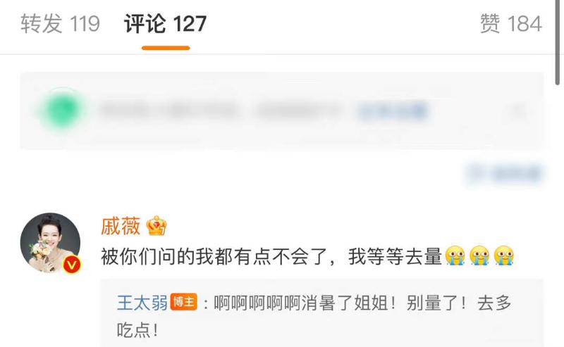 熱議了兩周,戚薇終於回復了粉絲,表示自己等等去量量看~