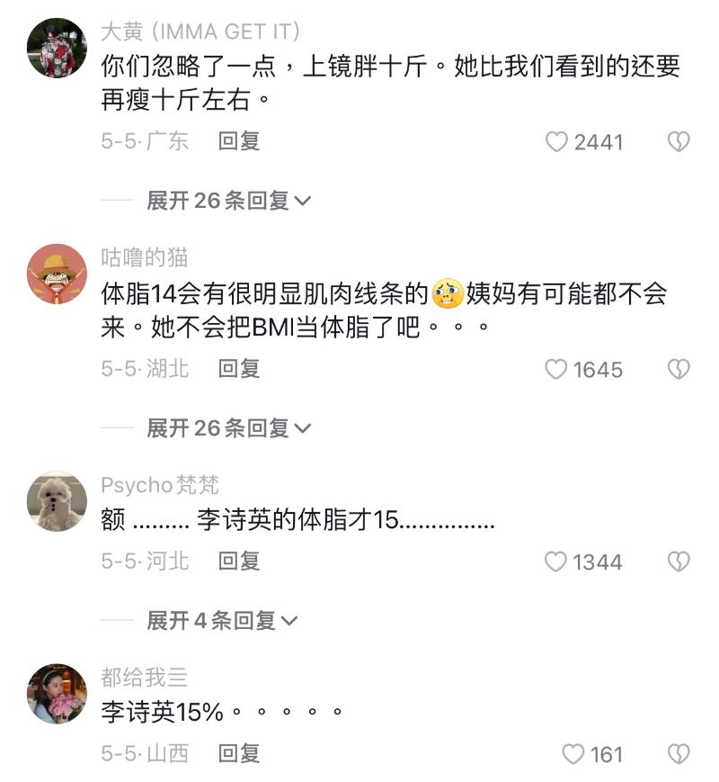節目播出之後,立刻引起網友爭議,認為她把體脂肪和BMI搞錯了吧?質疑以她的體態,看起來根本就不像體脂14的樣子,一致認為她在…說謊!