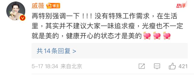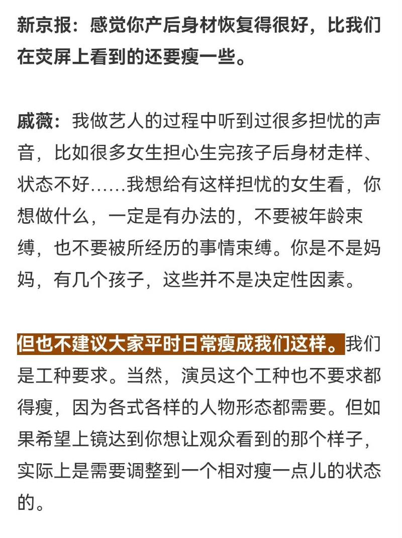 雖然但是,戚薇不止一次強調,如果不是工作需要,真的不建議這麼瘦👇