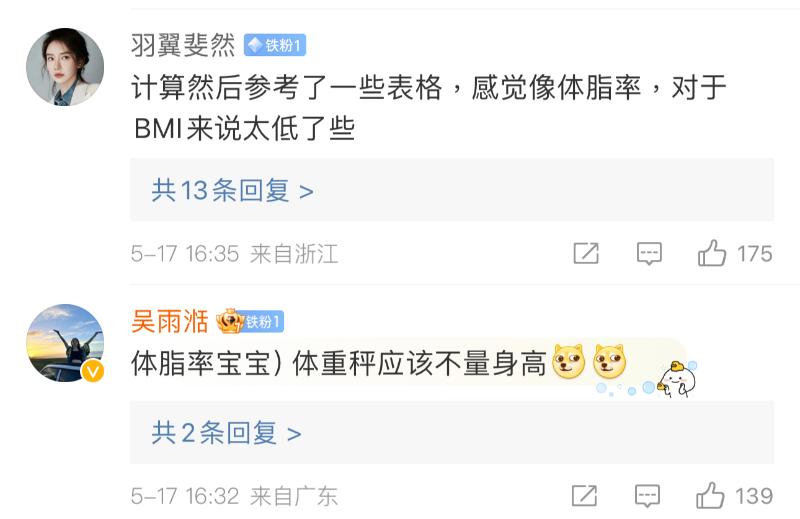到底這個13.0是體脂肪還是BMI?評論區一直認為是體脂肪,因為如果按照BMI方程式計算,戚薇的BMI應該是16.5才對!