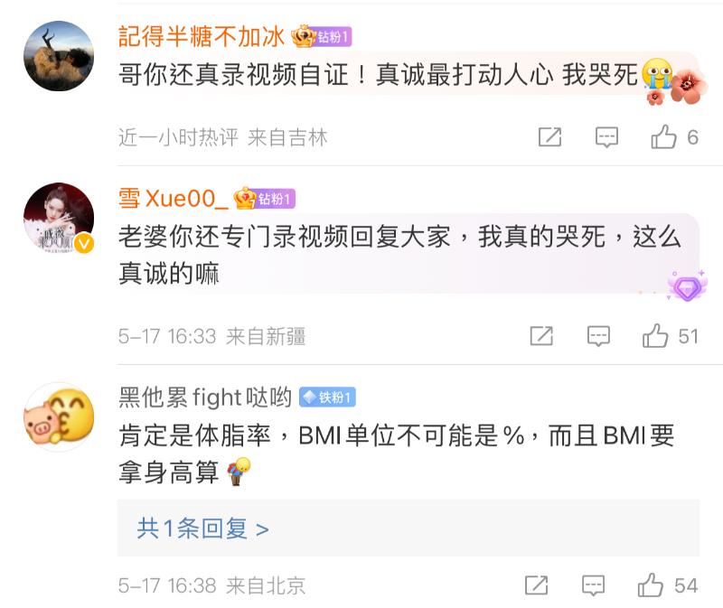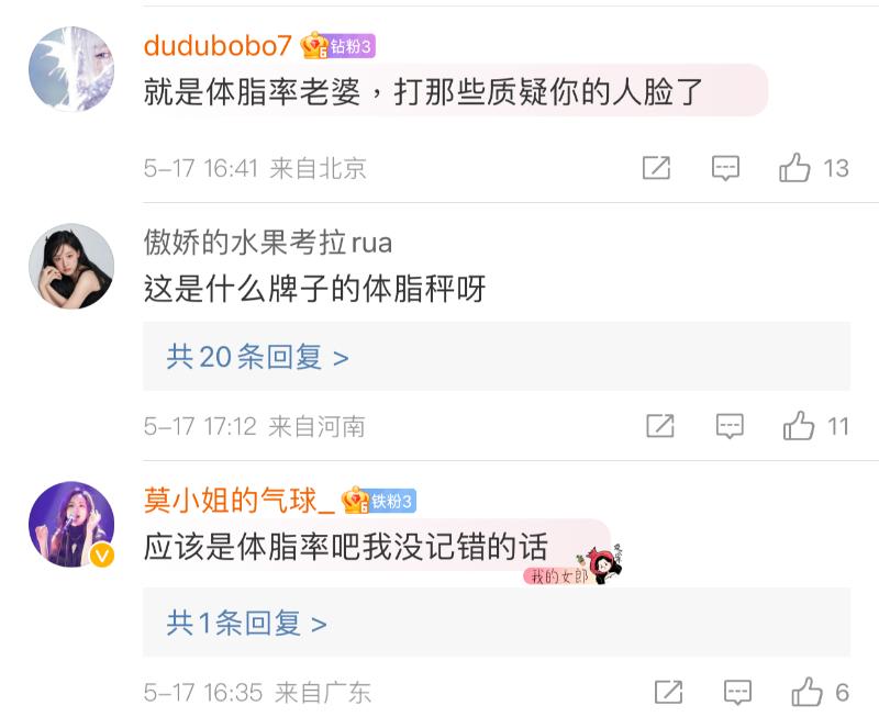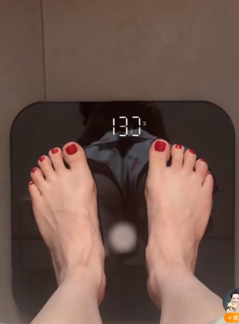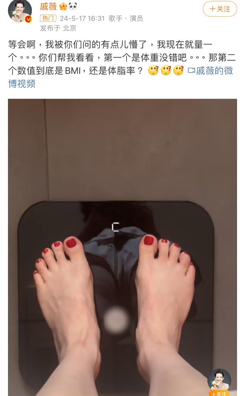 隨後還真的發了自己量體重的視頻,並在線問網友,到底顯示的數字是體脂肪還是BMI👇