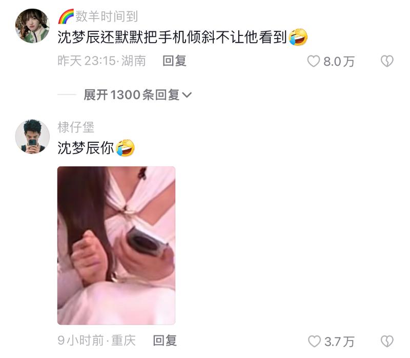 而沈夢辰拿手機的暖心小舉動,也被網友讚爆,很貼心的把手機屏幕給傾斜了角度,不讓他看這個熱搜👇