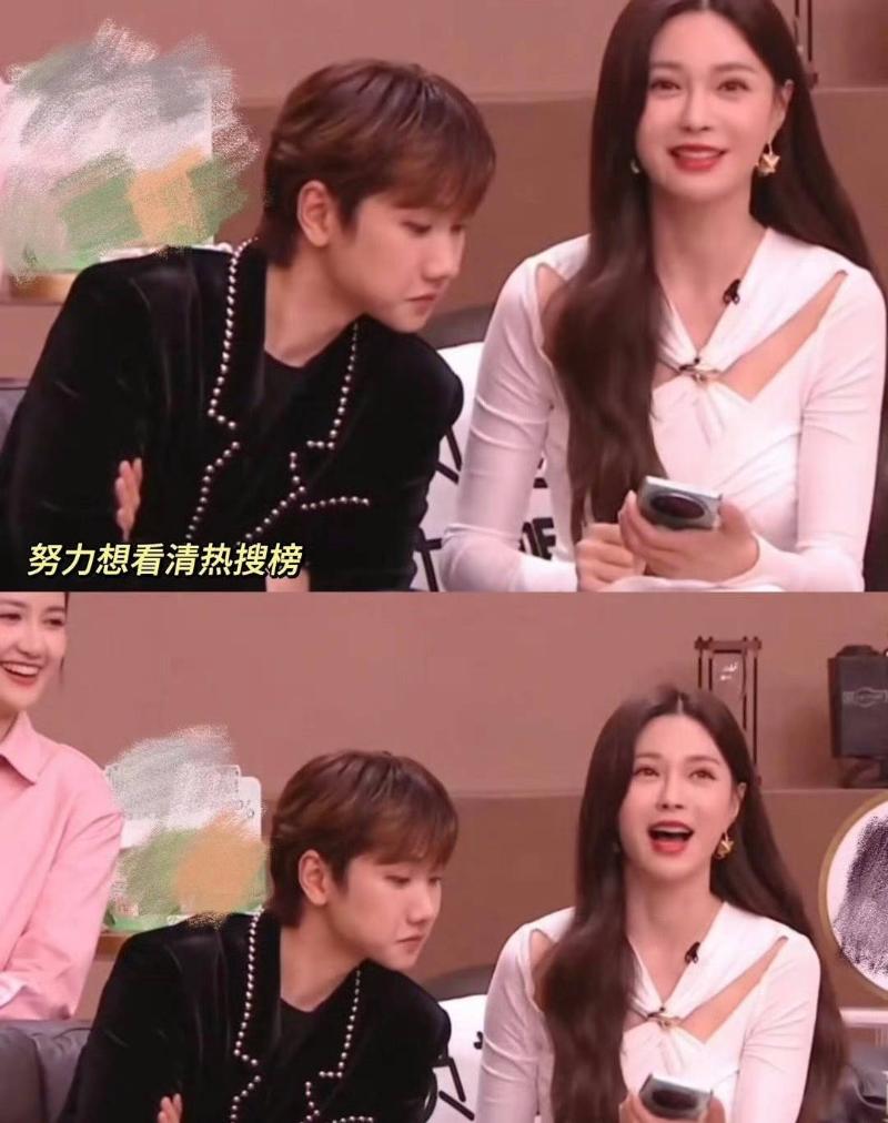 很明顯看見了熱搜後的表情,不由的撇了撇不是很開心的樣子,但忍不住一會就要去看一下,看起來真的快碎了👇