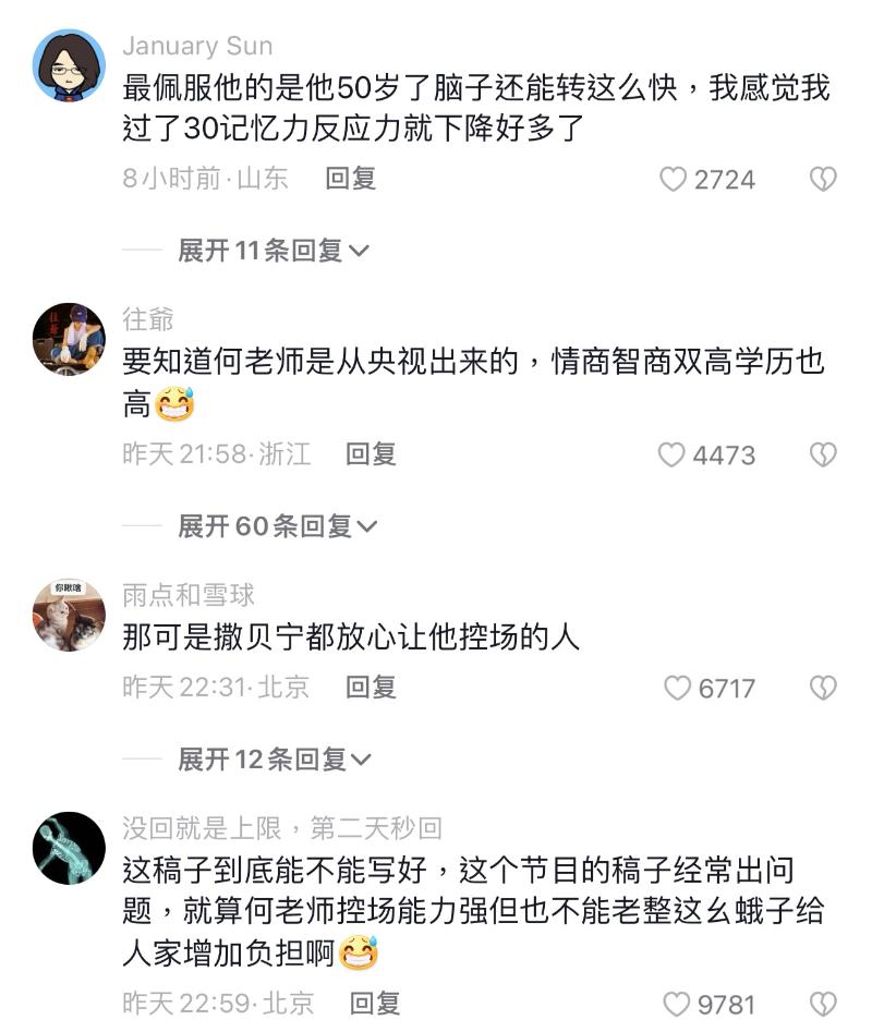 就是說,在錄製《歌手2024》第二集當天,何老師下午還在錄製《Hi!6》,晚上直接就過去錄直播,但反應依然這麼敏銳,真的是…不跪拜不行啊!
