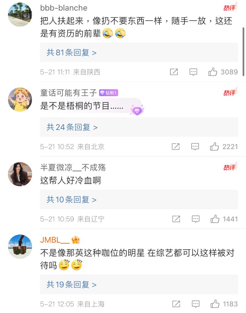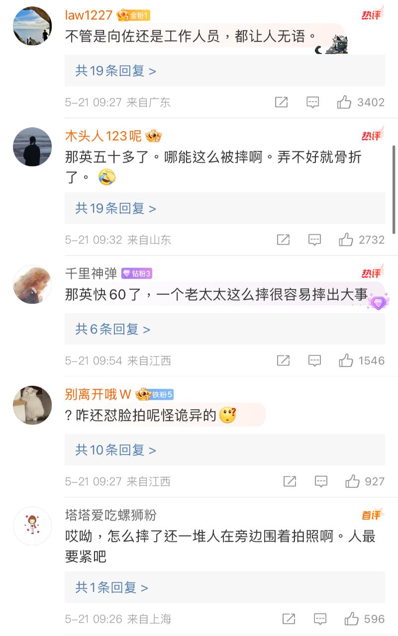 不少網友都覺得,就算是在進行任務,但以那英這麼大的年紀,遠處看來都摔得不輕,可是現場每個人似乎都只顧著節目錄製,第一時間居然都沒人伸出援手,究竟把嘉賓安全放在那裡?
