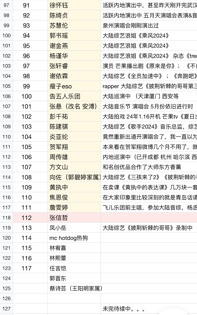 最後,來看看網友最新整理(截至24號下午5點)的台灣藝人名單,黃色部分為未轉發藝人👇