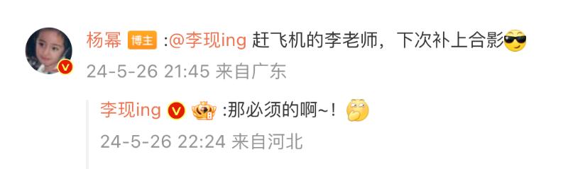 兩人互動也十分親密,楊冪甚至在自己微博評論區喊話李現👇