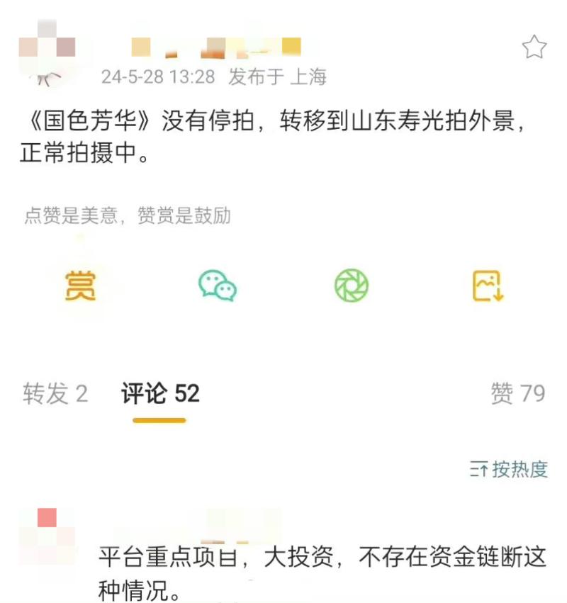 隨後,有瓜主闢謠,表示這部電視劇目前已經轉換拍攝地,不存在資金鏈斷的問題!