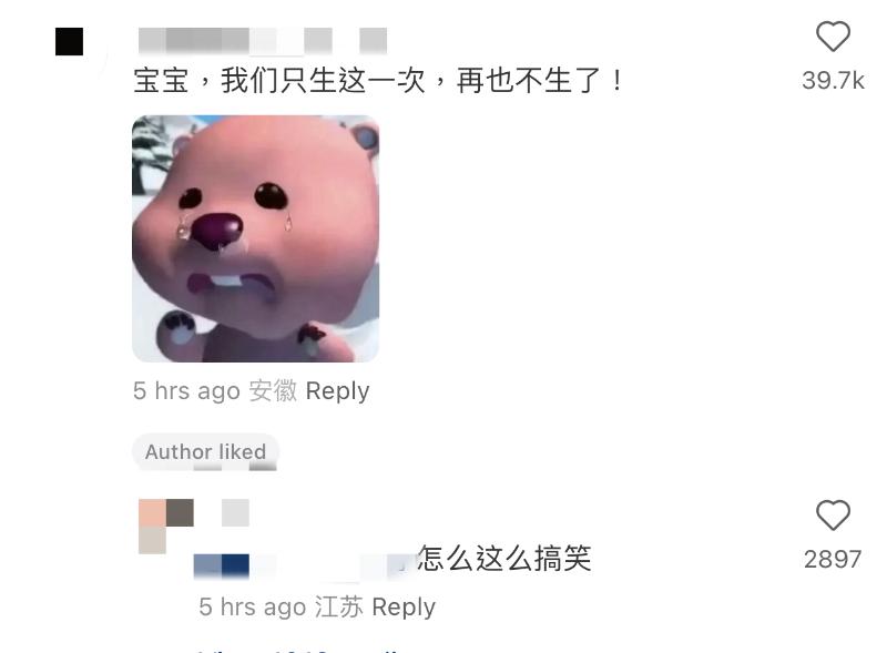 最好笑的熱評就是:「寶寶,我們只生這一次,再也不生了!」