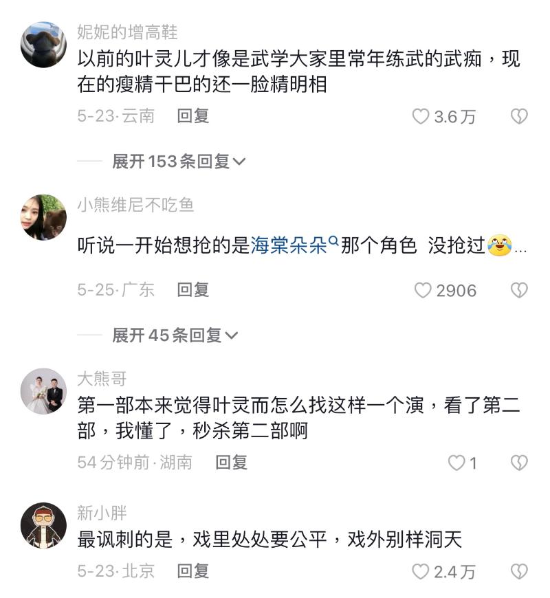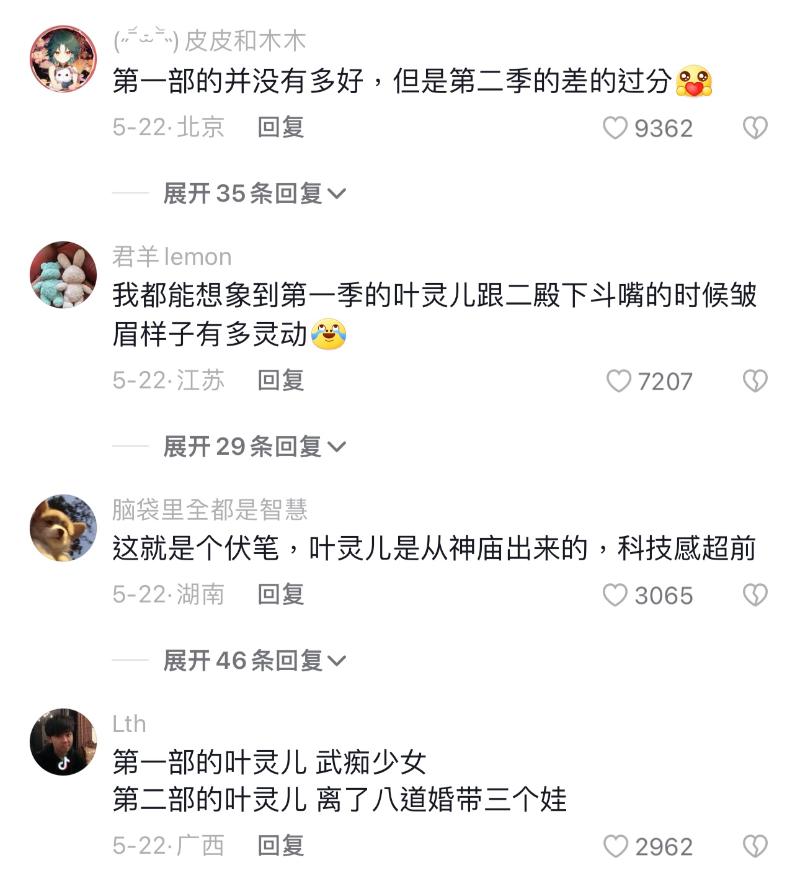 先來看看第一季和第二季“葉靈兒”的對比👇