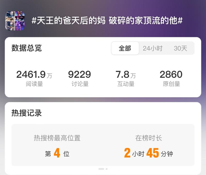 最搞笑的是,3號還真的出現了「#天王的爸天後的媽 破碎的家頂流的他#」的熱搜(⊙o⊙)…