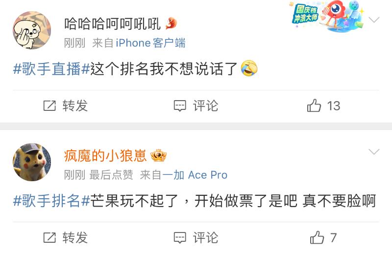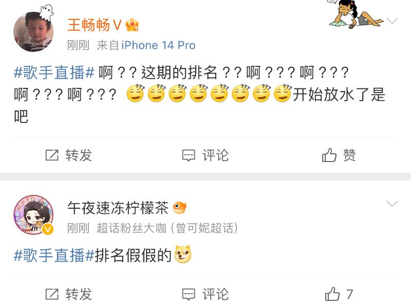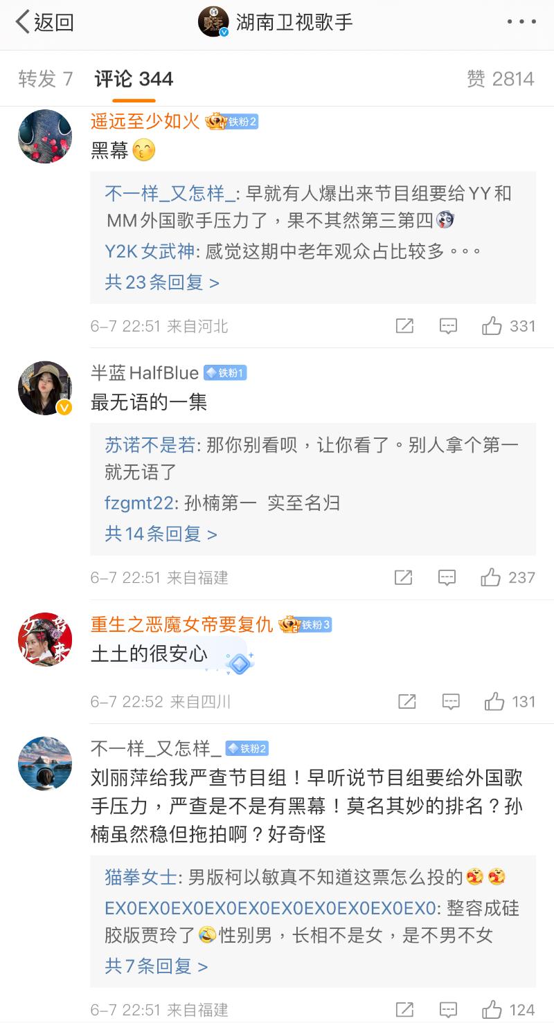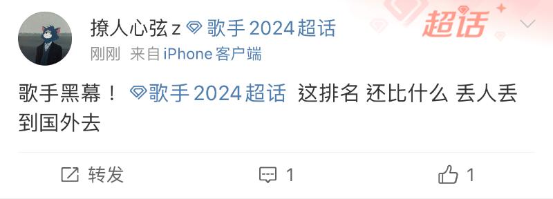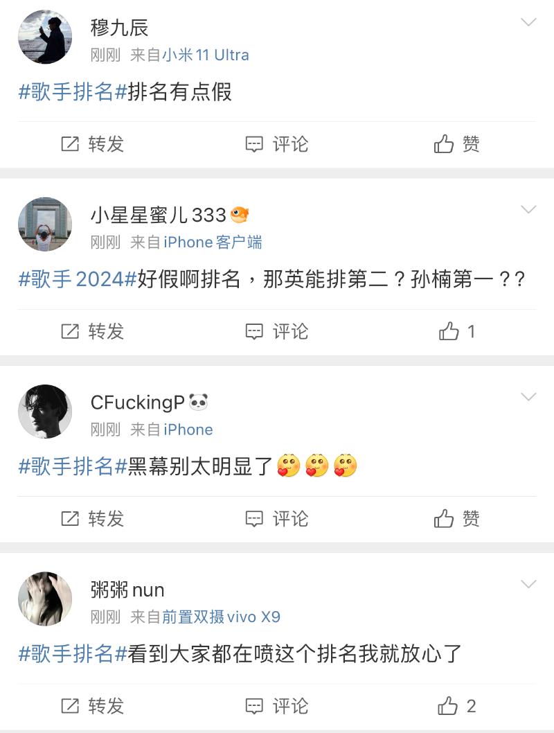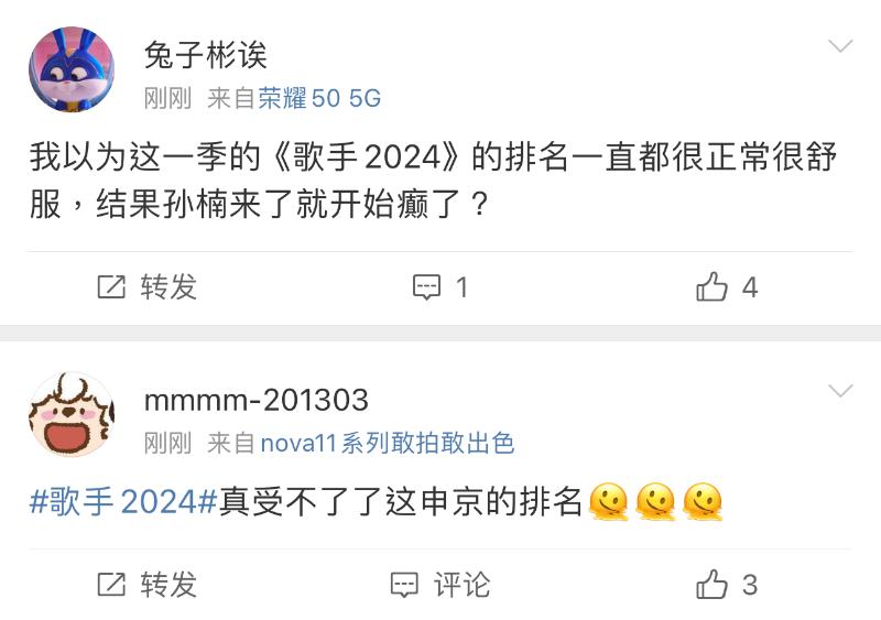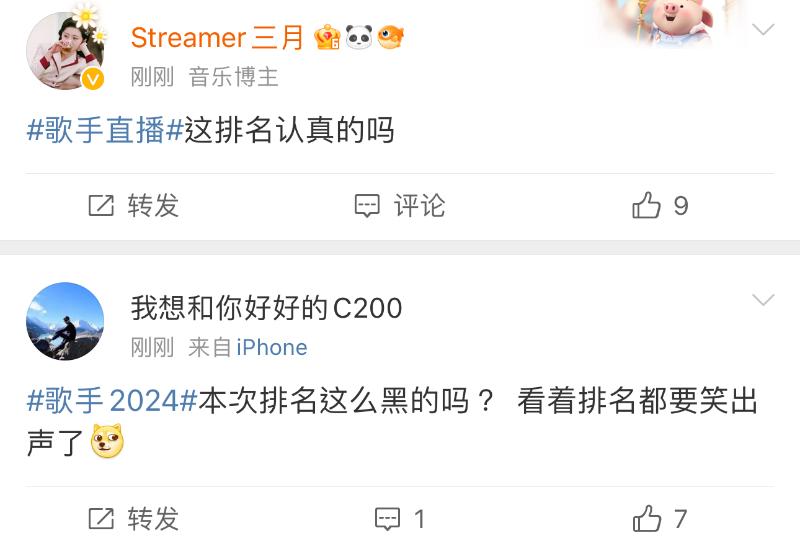 而在《歌手2024》官博宣佈本週成績的微博下,熱評都在吐槽👇