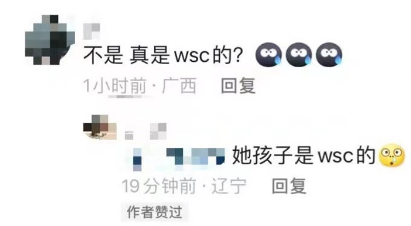 由於她曾經在直播中提過,孩子的爸長得帥、又有錢,並強調「當你知道他是誰就會覺得我命好」,因此wsc這三個字,立刻讓網友對號入座前中國首富獨子王思聰!