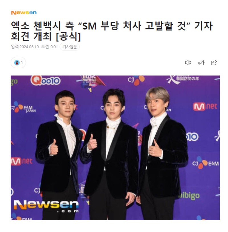 維權來了!EXO CBX成員:邊伯賢、金珉錫和金鍾大,將在10號下午舉辦「告發SMTOWN不當行為」緊急記者會,抗議SM的不當要求!