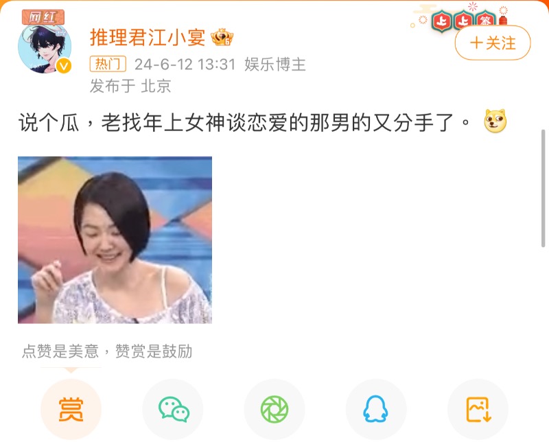 隨著魏大勛人氣突然暴升,當時就有網友在線質疑,為什麼魏大勛會選擇比自己年長10歲的秦嵐👇