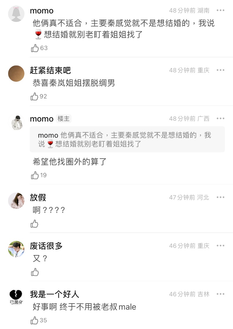 熱評都在恭喜秦嵐終於不用再被魏大勛女粉絲罵👇