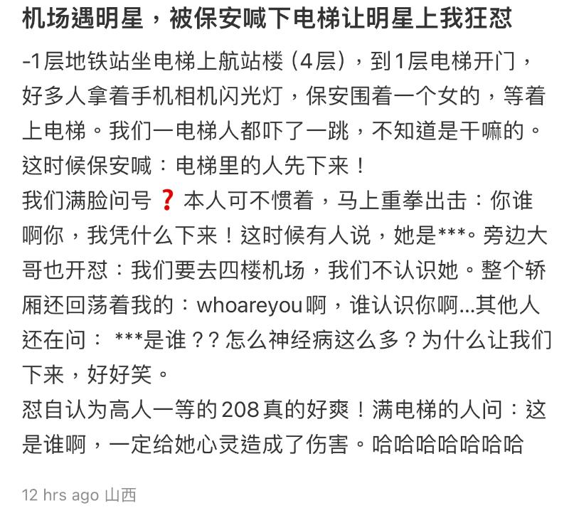 就是說,這麼一則貼文,引起全網通緝誰才是爭議中的女藝人啊!沒錯,有網友日前在小紅書發文,表示自己在機場遇見耍大牌的藝人,被自己懟得原地社死!