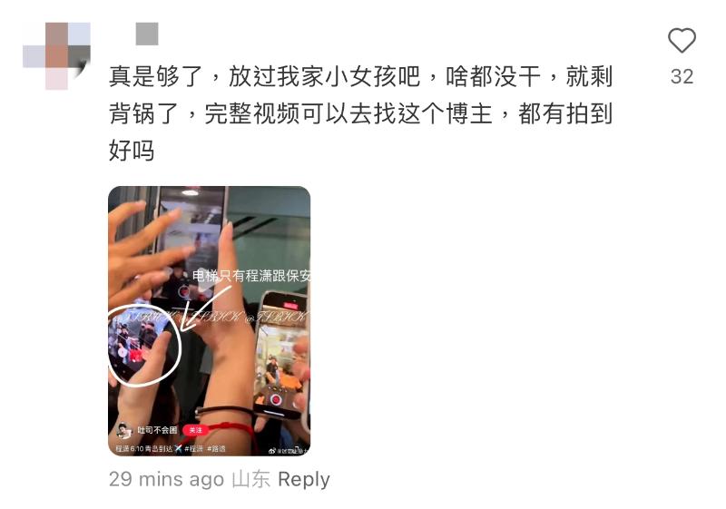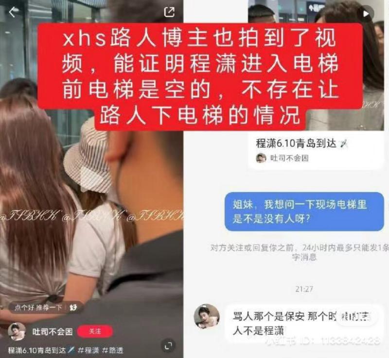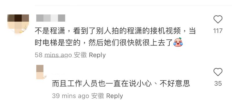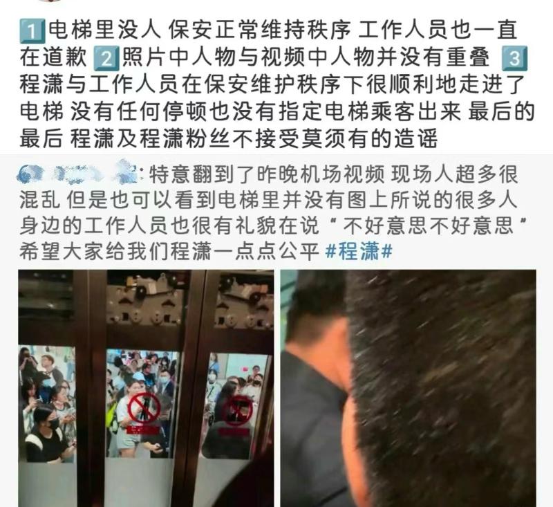 但隨後粉絲紛紛留言闢謠,公開了程瀟在機場的視頻,表示從視頻中清楚可見,程瀟進入電梯時,電梯內並無任何人,和原Po說的情況不相符👇