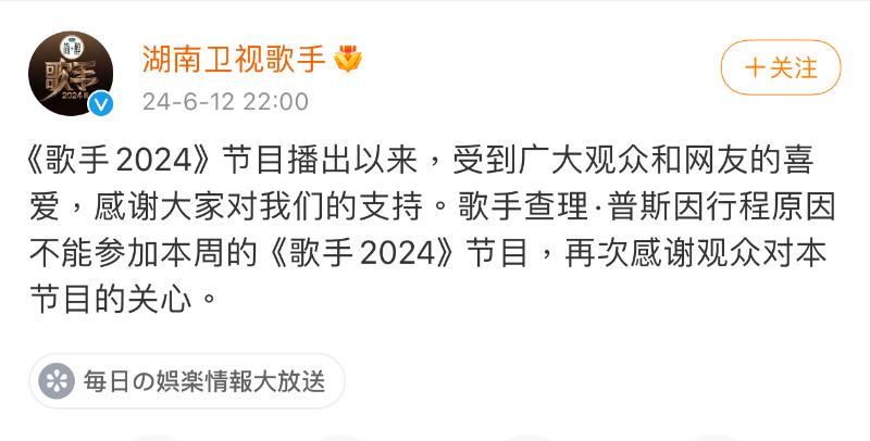 就是說,第六周的《歌手2024》依然充滿了話題性啊!是噠,原定在本週襲榜的斷眉,在節目播出前兩天官宣,因為行程問題…不來了!