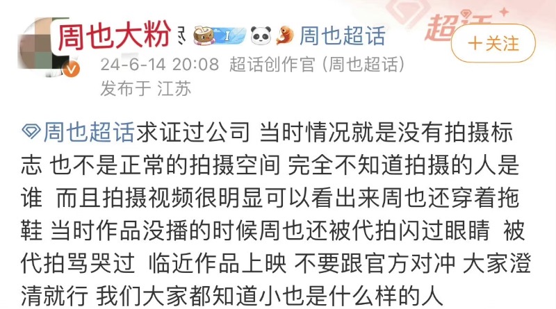 先來看看,央視電影頻道,也就是網友口中的「六公主」,發了在後台拍攝周也的視頻,但沒有配上文案,甚至視頻中也沒有打上水印👇