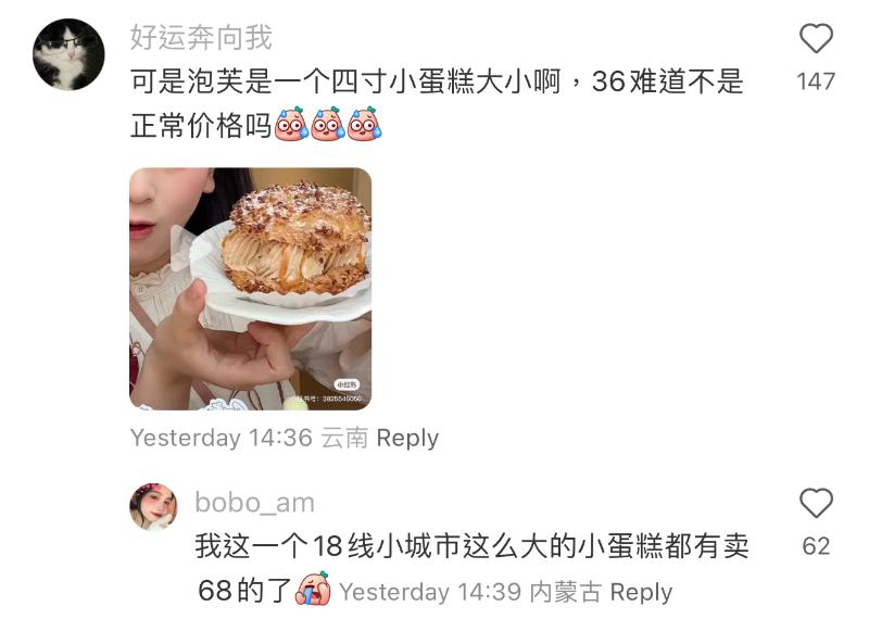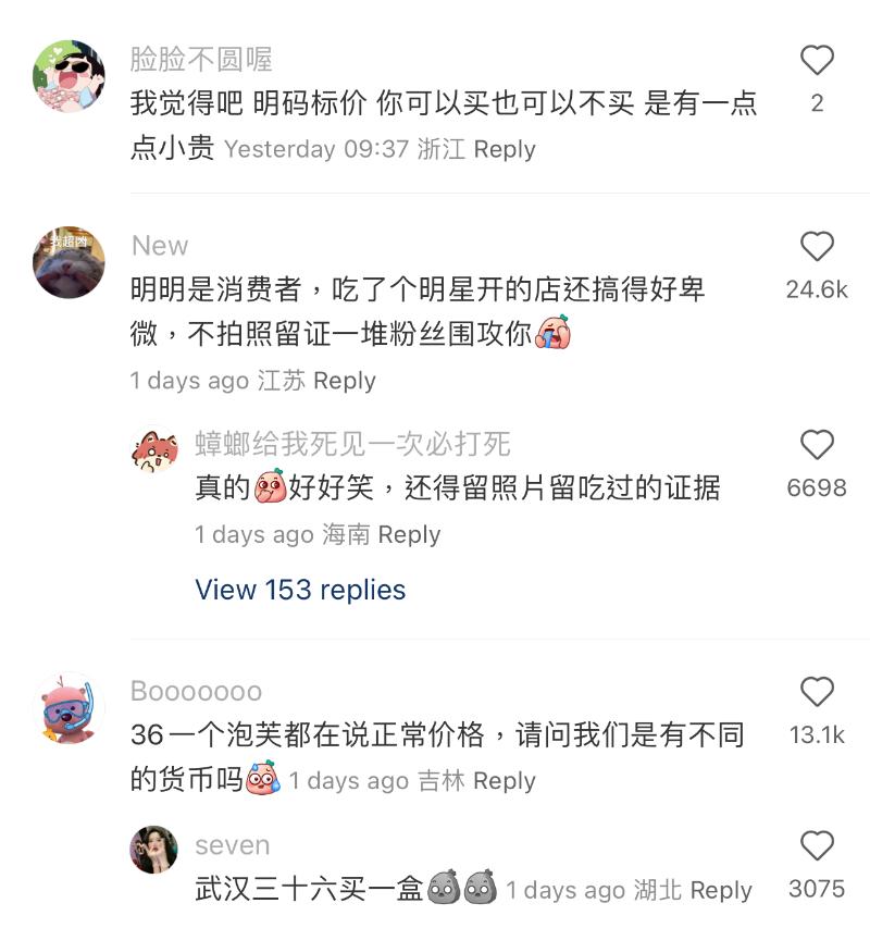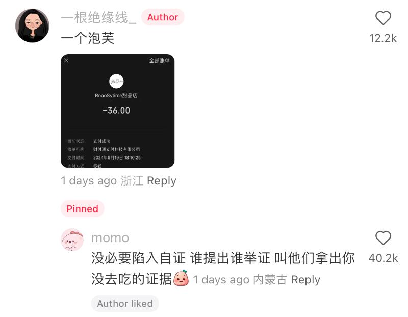 隨後還在評論區曬出了自己用了36元(人民幣,下同)買了泡芙的證據,配文:「一個泡芙」