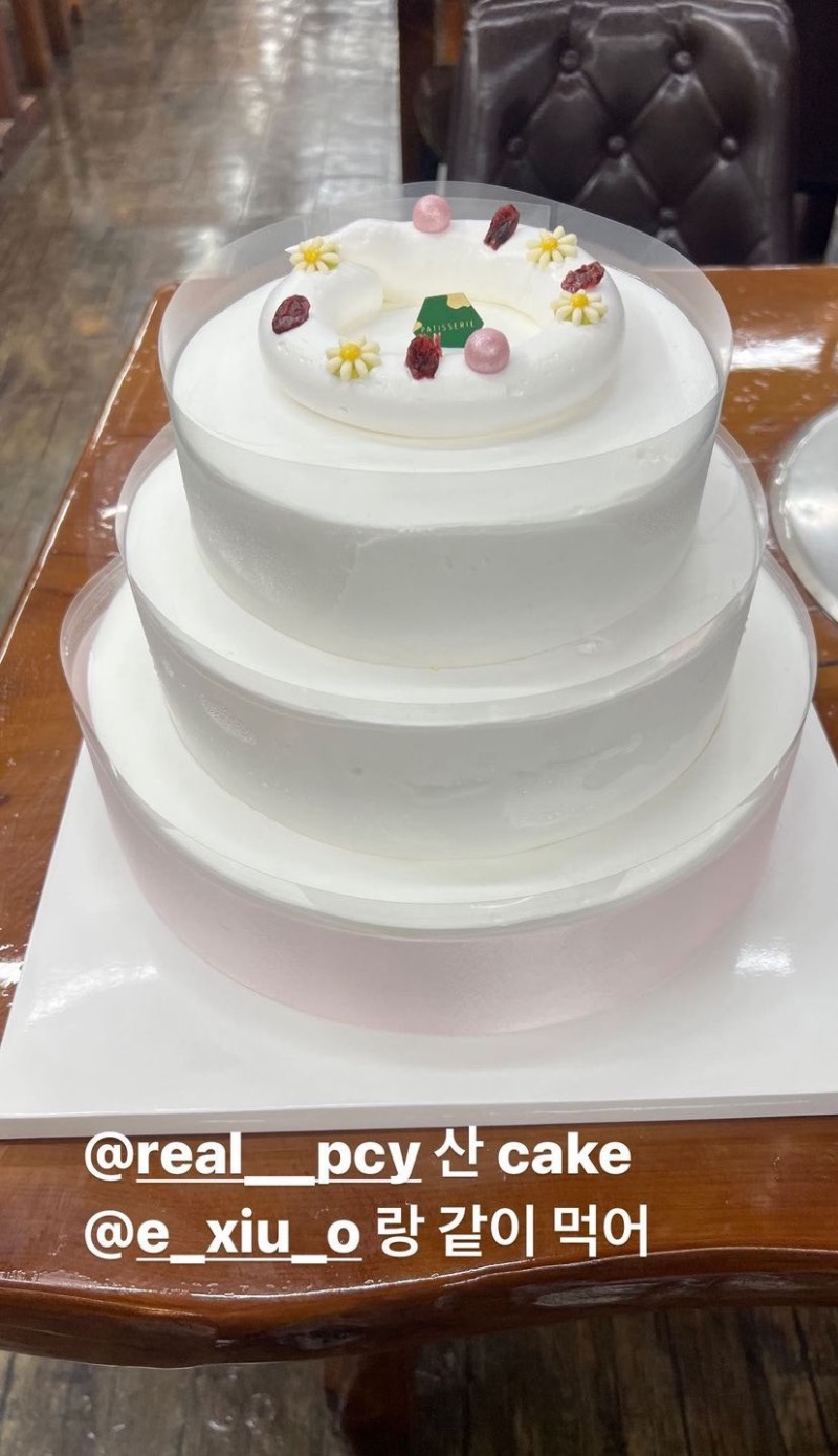 另外,原來燦烈還送上了蛋糕,我們張藝興也和Xiumin一起享用啦!