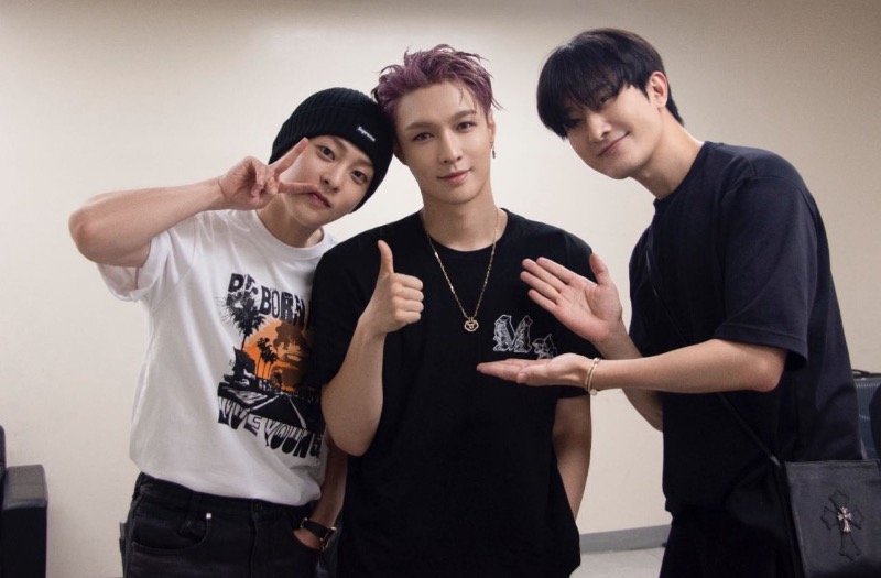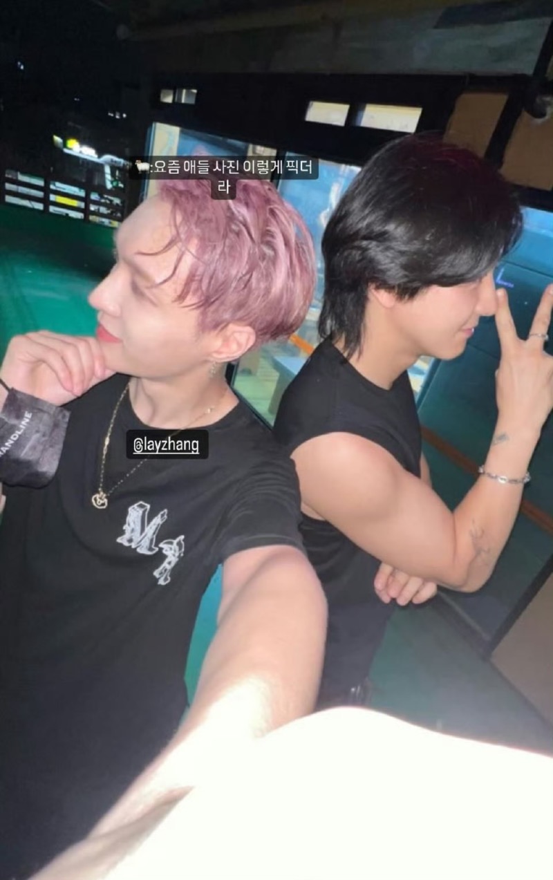 但,驚喜不止這些,張藝興隨後更新SNS,曬出了和Xiumin在後台的合照,同框的居然還有SJ-M的周覓呢!