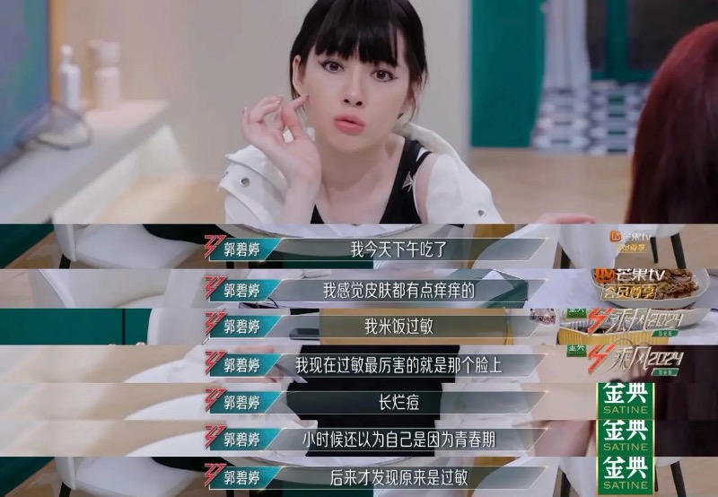 郭碧婷表示自己下午吃了米飯後,臉上就開始覺得癢癢的。她說小時候臉上長爛痘還以為是青春期,結果其實是過敏。