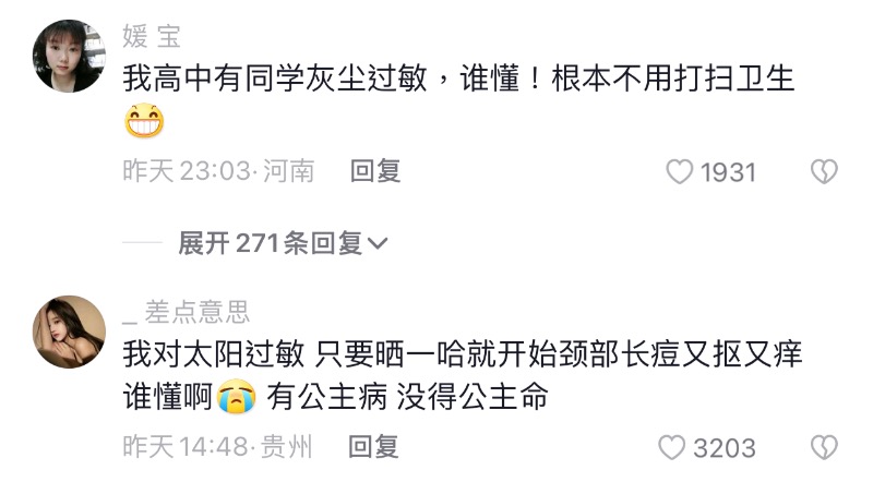 甚至不止米飯過敏,還有對冷空氣、陽光、甚至還有對水過敏的👇