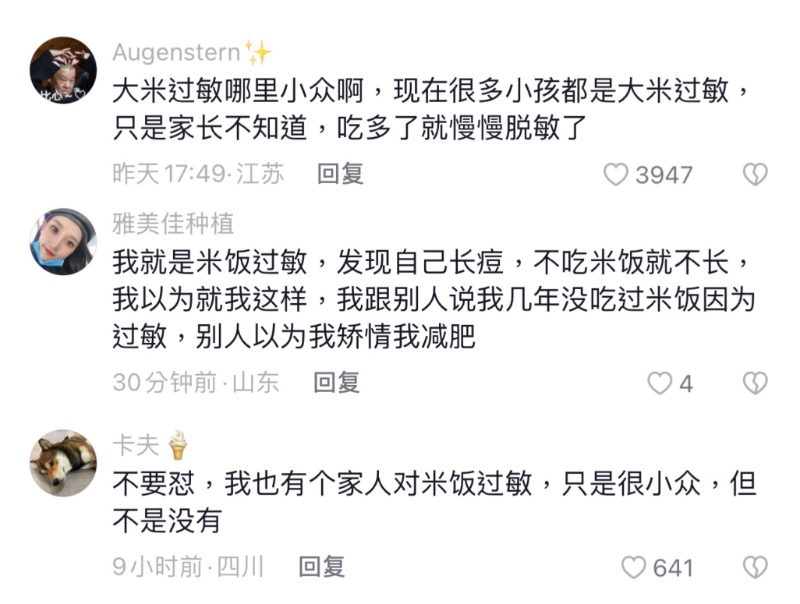 但,沒想到評論區居然引來超多留言,紛紛證實真的有「米飯過敏」👇