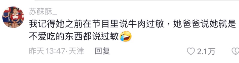 節目播出之後,原本有不少網友嘲諷她,認為她爸爸都曾在節目中提過,郭碧婷不想吃的東西,都會說是過敏👇