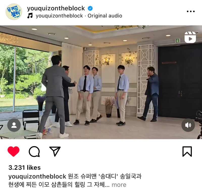沒想到26號這天,劉在錫、曹世鎬主持的《You Quiz On The Block》節目IG,公開了三胞胎錄製節目的現場視頻👇