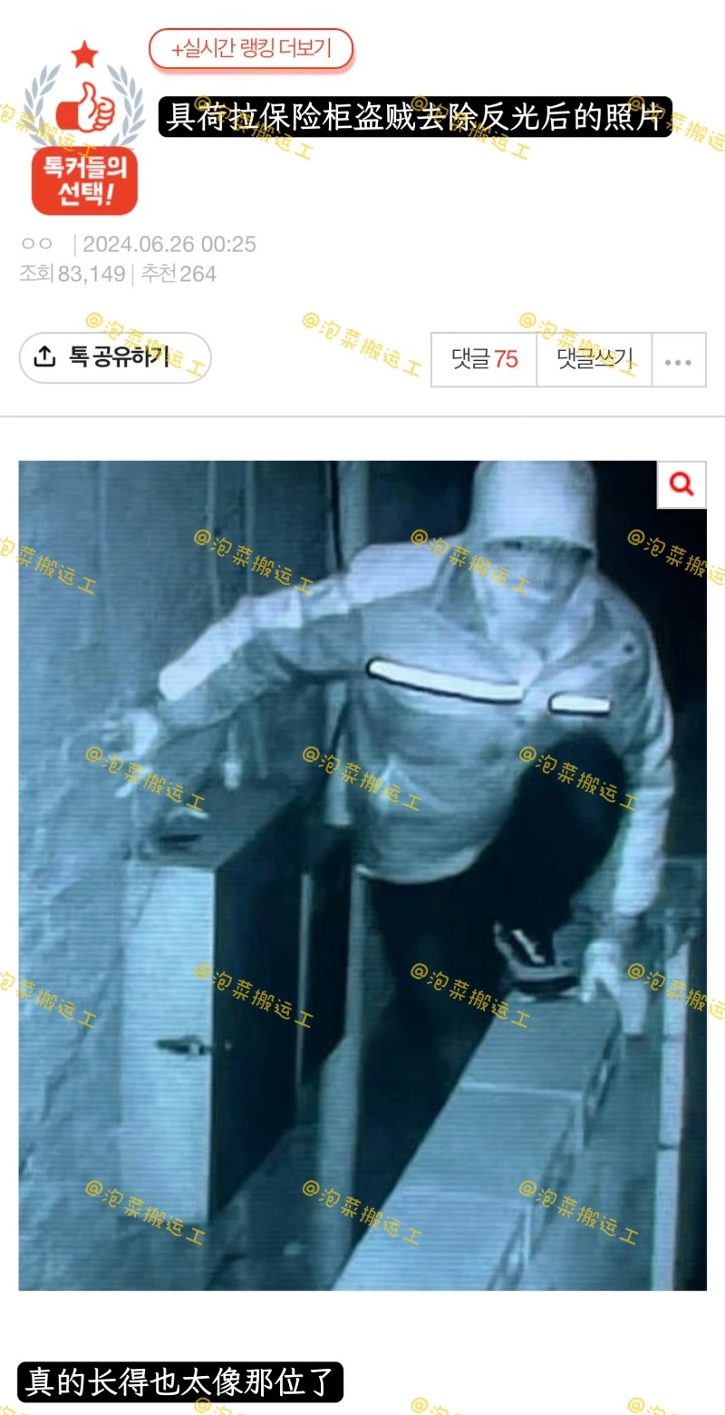 就是說,韓網似乎對於具荷拉保險箱失竊案件的盜賊,沒有停下討論的腳步啊!沒錯,時隔4年,具荷拉保險箱失竊案,終於放出了高清的盜賊畫像,引起熱議!