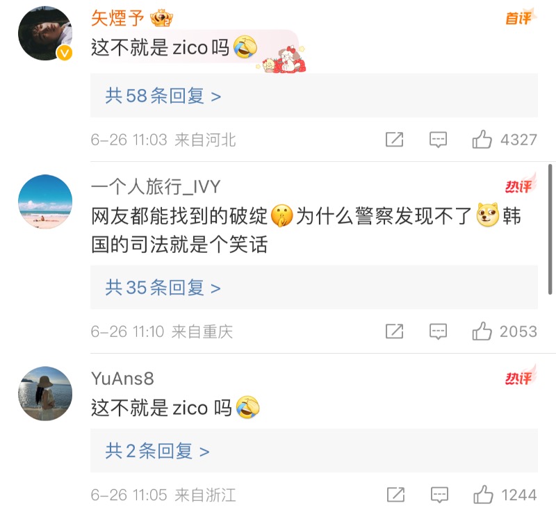 隨著熱議,Zico方雖然發出了強硬的回應立場,但韓網依然有相關討論熱帖,像是將Zico照和嫌疑犯的對疊圖👇