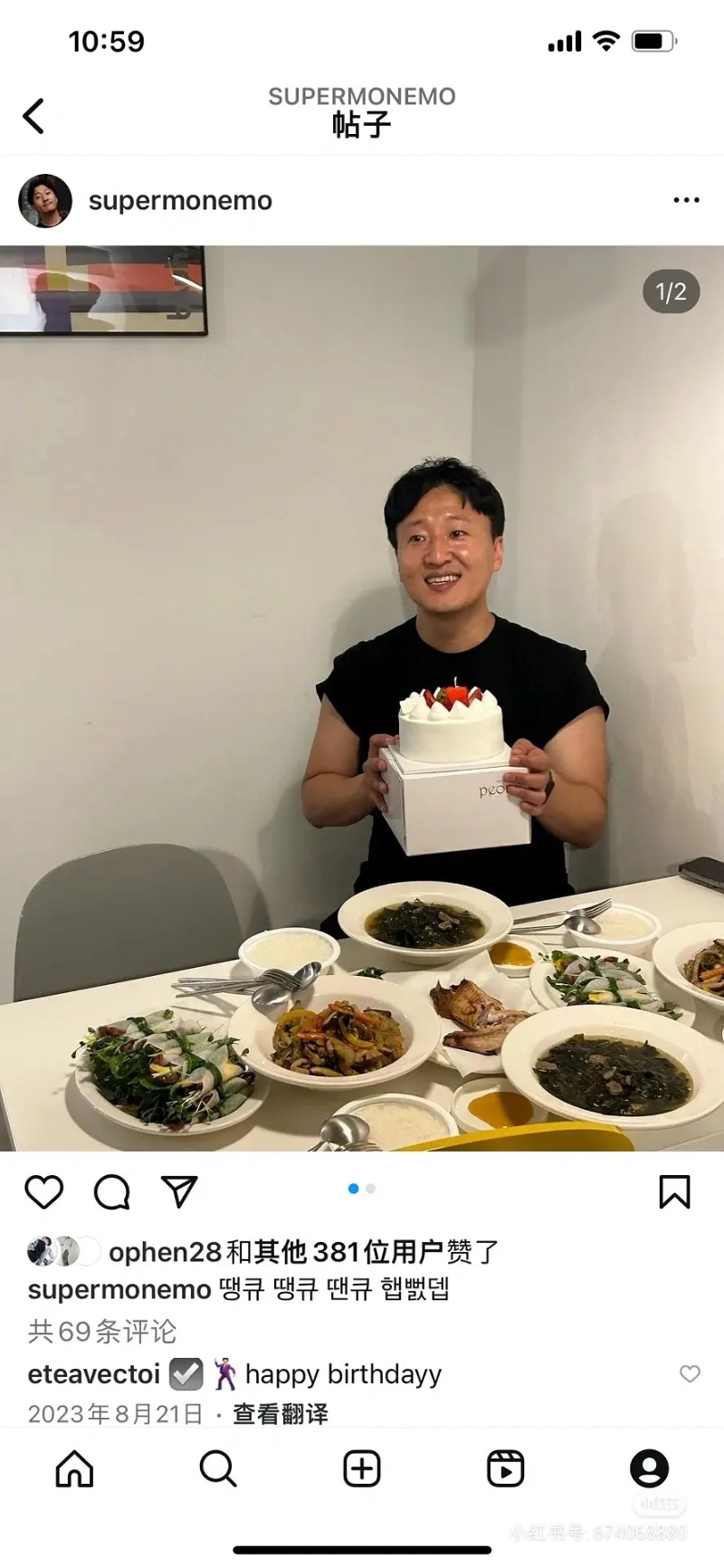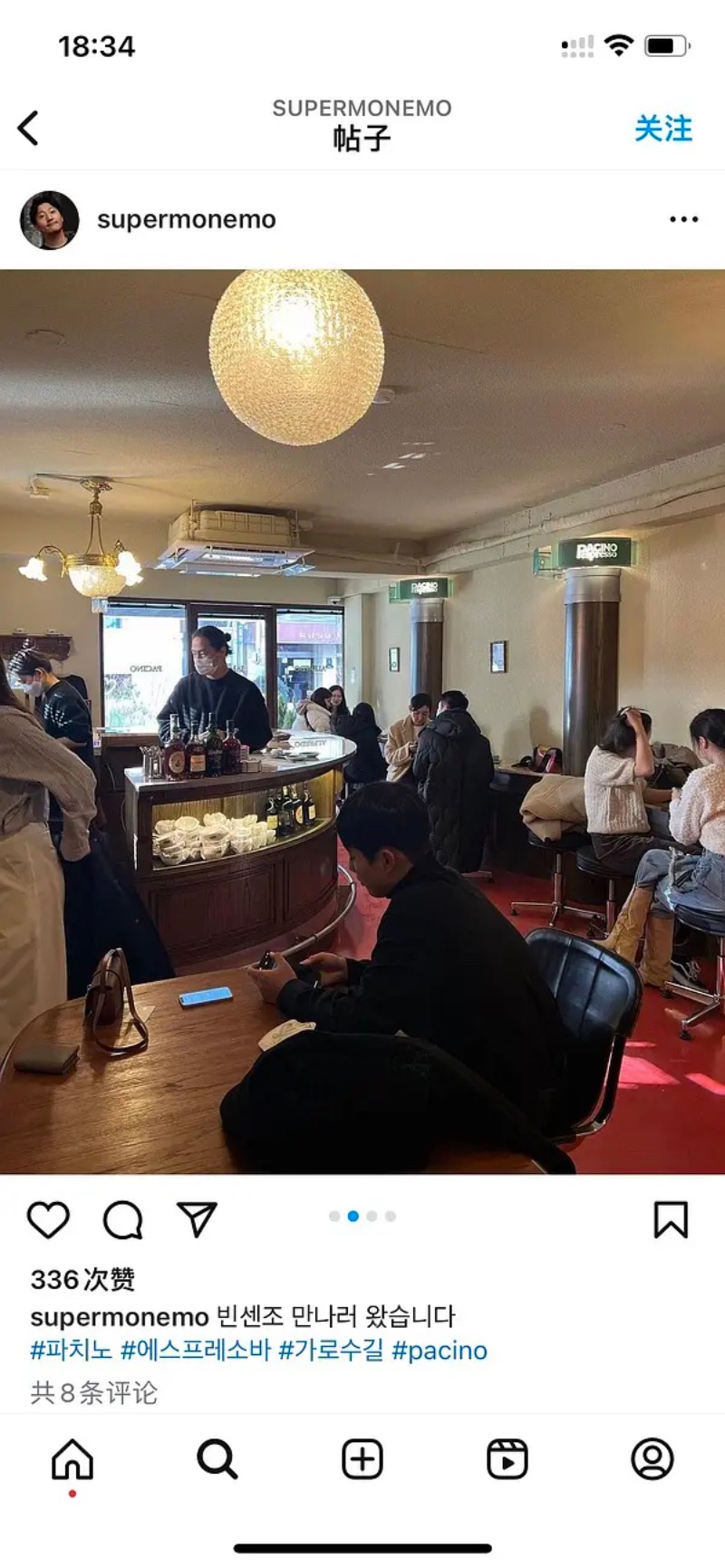邊佑錫好友發的咖啡館圖,這位網紅女友也有回覆👇