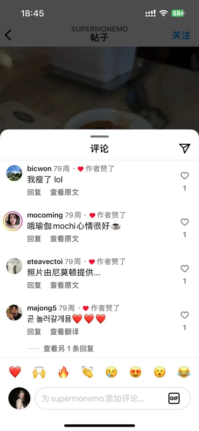 邊佑錫好友發的咖啡館圖,這位網紅女友也有回覆👇