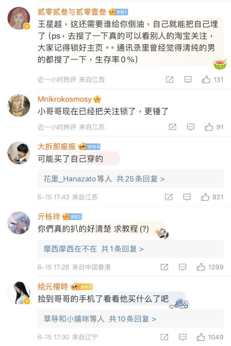 啊咧~這麼敏感的熱搜詞究竟怎麼一回事?原來有網友通過手機號,扒出王星越的淘寶賬號,從裡面可以看見他關注的店~而當中一些商店中的商品,已經和王星越的私服對上了!