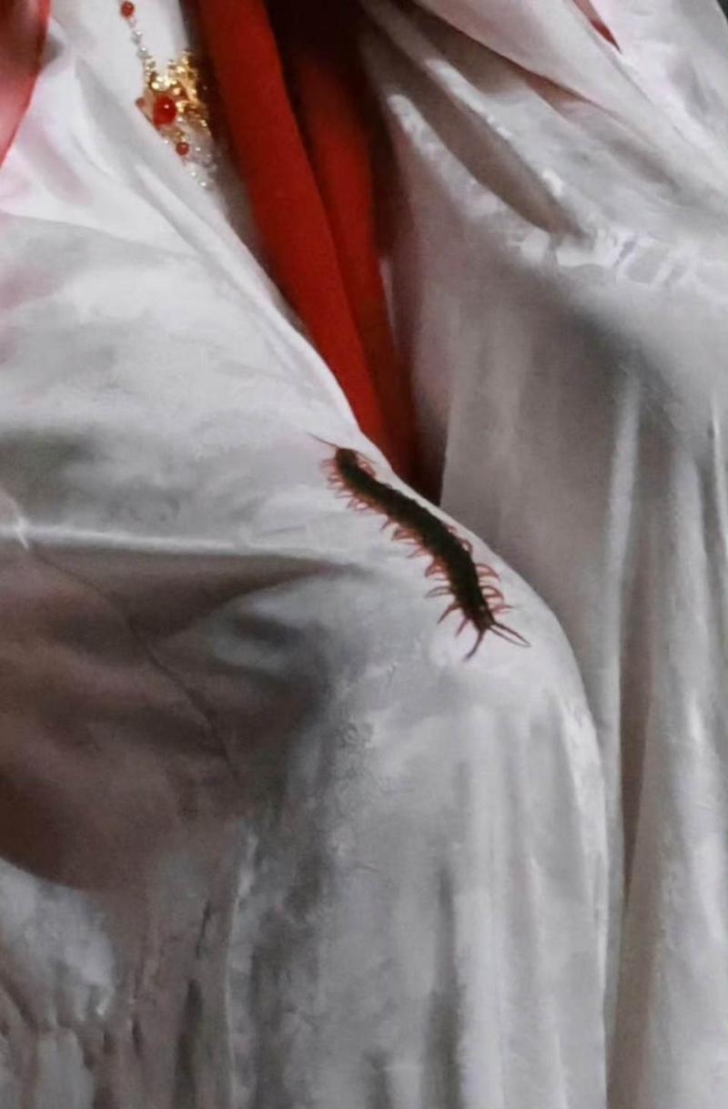 看見這恐怖情景,在拍攝現場對面的代拍瘋狂提醒李一桐,但我們鈍感十足的李一桐完全不知道發生了什麼事,一臉呆萌看向代拍們!甚至還調整了坐姿,結果原本在大腿上的蜈蚣開始亂身上爬,重點⋯李一桐還把袖子蓋在了蜈蚣上😱😱😱😱 視頻看起來真的更驚險👇