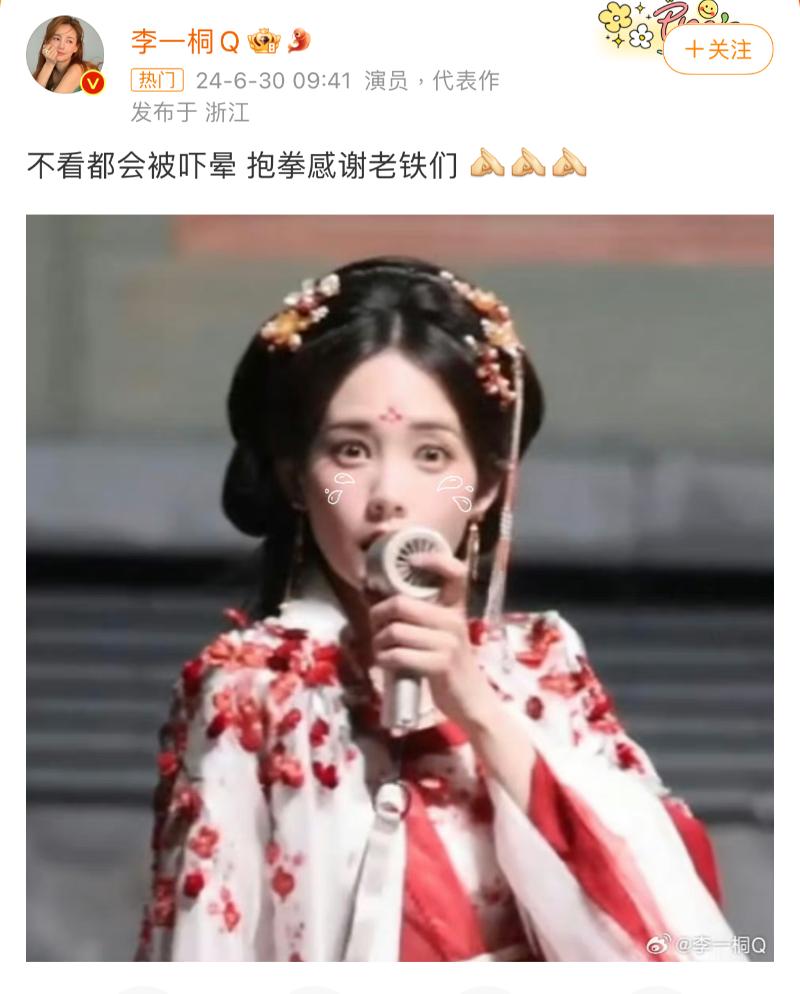 在上了熱搜之後,李一桐也發文回應,表示自己不看都會被嚇暈,再次感謝代拍們👇