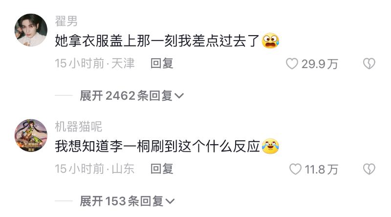 在上了熱搜之後,李一桐也發文回應,表示自己不看都會被嚇暈,再次感謝代拍們👇
