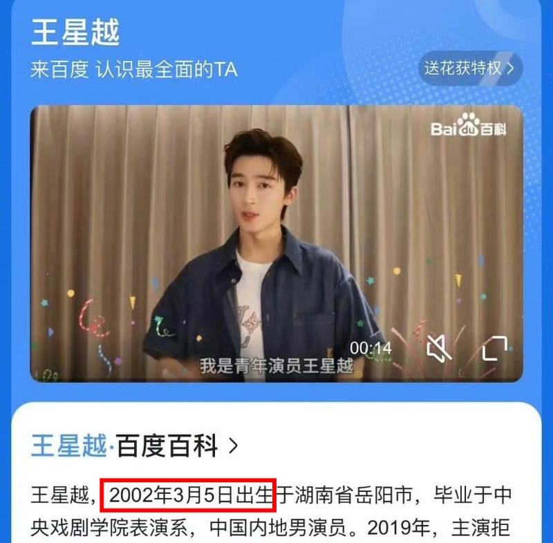 另外,從《墨雨雲間》播出期間,就有不少網友在線質疑的,就是王星越的年齡!先來科普,王星越百科是2002年生,也因此被稱為「小孩哥」👇