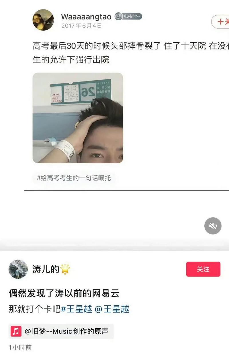 在30號這天,其網易雲賬號也被扒出,被發現在2017年時,王星越曾發了一則動態,上面顯示本人2017年5月5日,住院嶽陽市人民醫院,王濤,17歲。