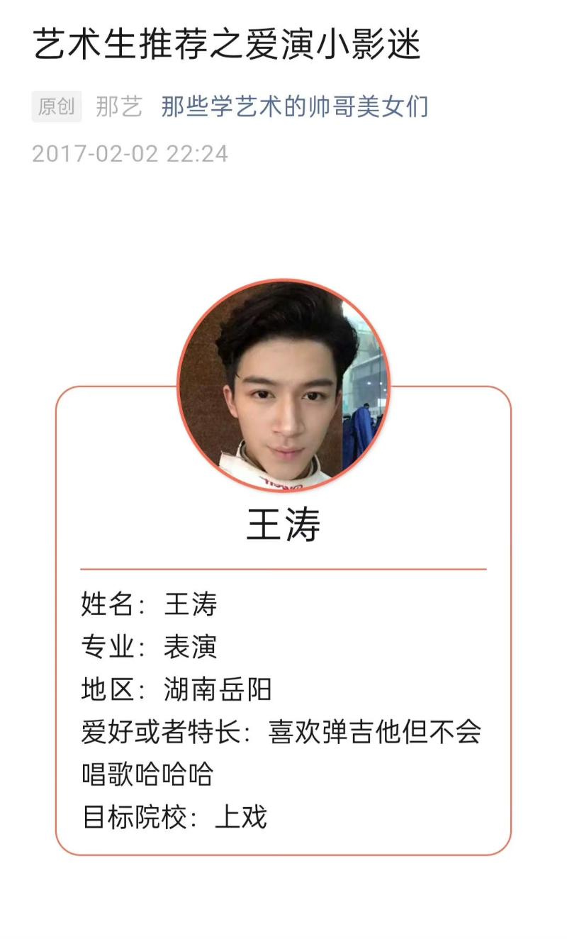 另外,7月1日上午,有網友在某藝考公衆號平台,發現了王星越素人時期于2017年2月2日,在這個平台上公開錄音裡,透露自己2017年2月2日17歲。同ID公衆號微博,在2017年1月30日發布了王濤的個人信息年齡17歲。