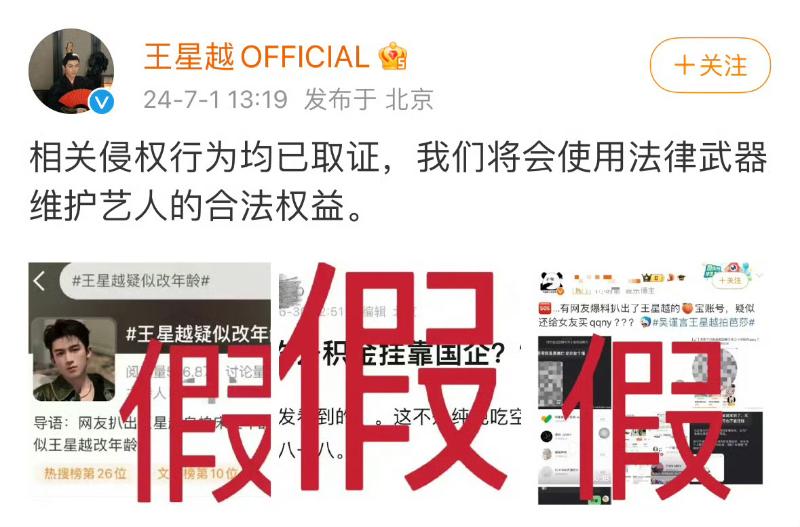 雖然但是,王星越工作室在1號下午,發出聲明打假,表示所謂的王星越修改年齡、王星越淘寶賬號等都是造假!